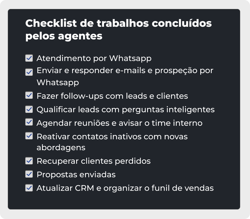 Tenha Multiagentes autônomos de IA que executam trabalhos, se conectam com sistemas, conversam com pessoas, vendem, atendem, encantam e nunca esquecem.